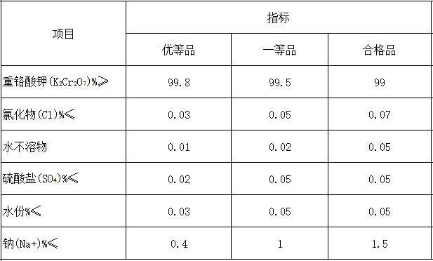 產品性狀:橙紅色三斜晶體或針狀晶體,不吸濕;溶于水,不溶于乙醇;強氧化劑,與有機物接觸、摩擦、撞擊能引起燃燒,有毒