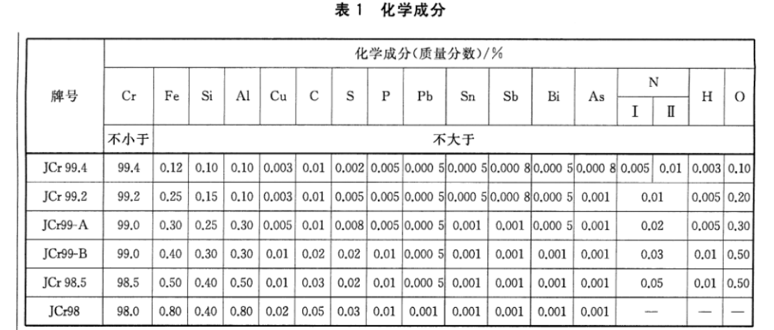 執行標準:95-99A金屬鉻 ,國標及非國標型號齊全。 牌號及標準參考國標GB/T3211-2023